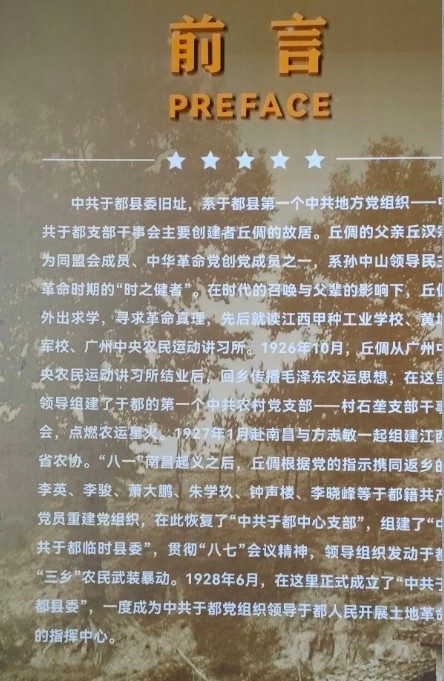 丘倜受父辈精神感召,在此创建于都首个中共农村支部,成为土地革命的核心指挥地。